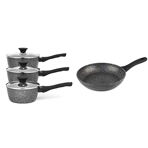 Salter BW05751S Megastone Saucepan Set - 3 Forged Aluminum Pans, 16cm,18cm, 20cm & BW05745 Megastone Collection Non-Stick Forged Aluminium Frying Pan, 20 cm