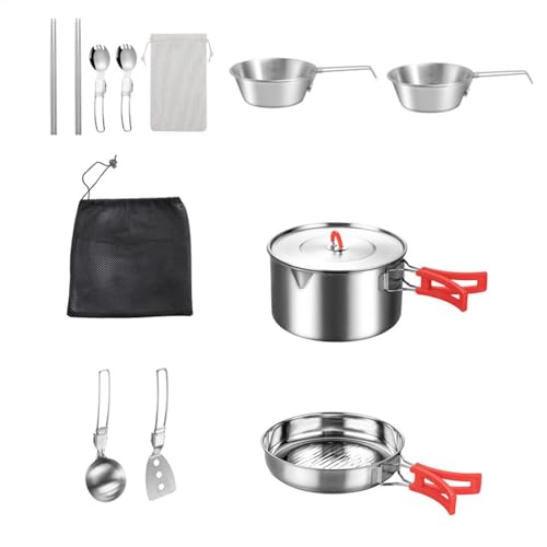 Outdoor Cookware Set, Camping Pots and Pans Set, Outdoor Camping Cookware Set, Stainless Steel Camp Kitchen Set with Storage Carry Bag for Backpacking, Backyard Picnic, Usage