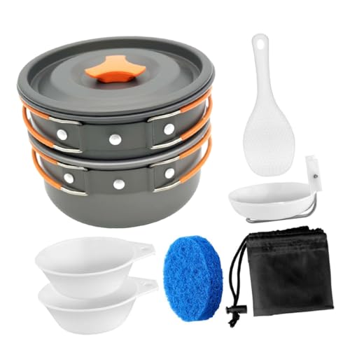 BESPORTBLE Camping Cookware Set Portable Outdoor Cooking Set Aluminium Alloy Pots Pans with Orange Handle Lightweight Compact for Hiking and Camping