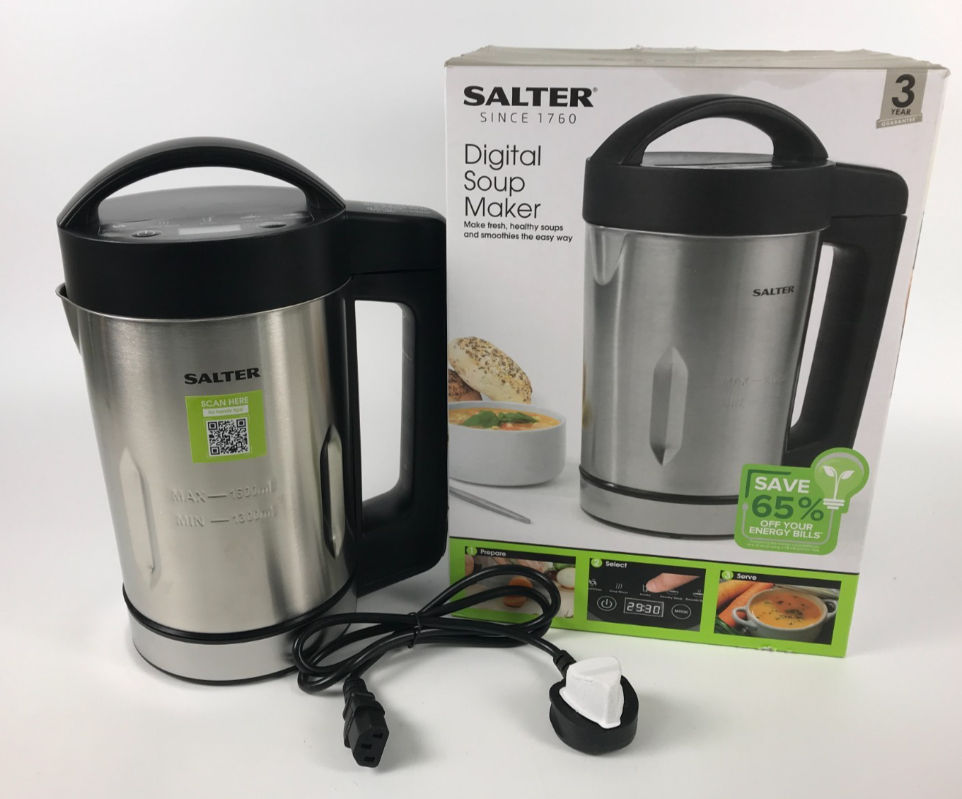 Salter EK5118V2FVDE EK5118V2 Digital Maker-1.6L, Soup, for Batch Cooking, 5 Settings (Smooth, Chunky, Drinks, Keep Warm, Blend/Clean), Overspill Sensor, Stainless Steel, 900W, plastc