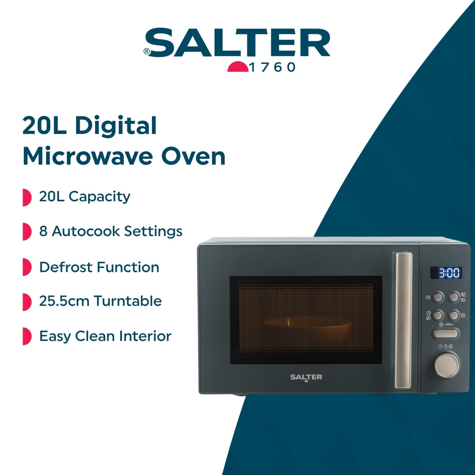 Salter 20L Digital Microwave 95-Min Timer 25cm Turntable LED Display Cosmos Grey
