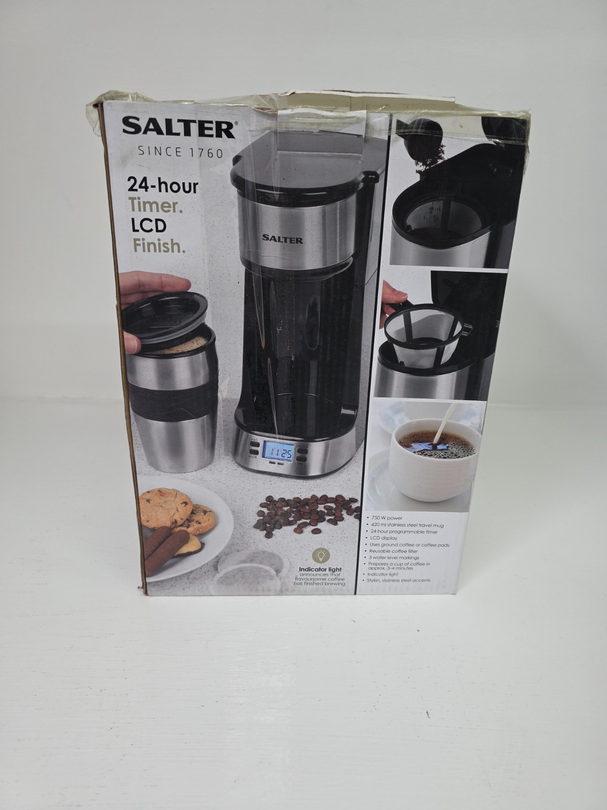 Salter Digital Coffee Maker Filtered Ground Pods Drinks Travel Mug 24 Hour Timer