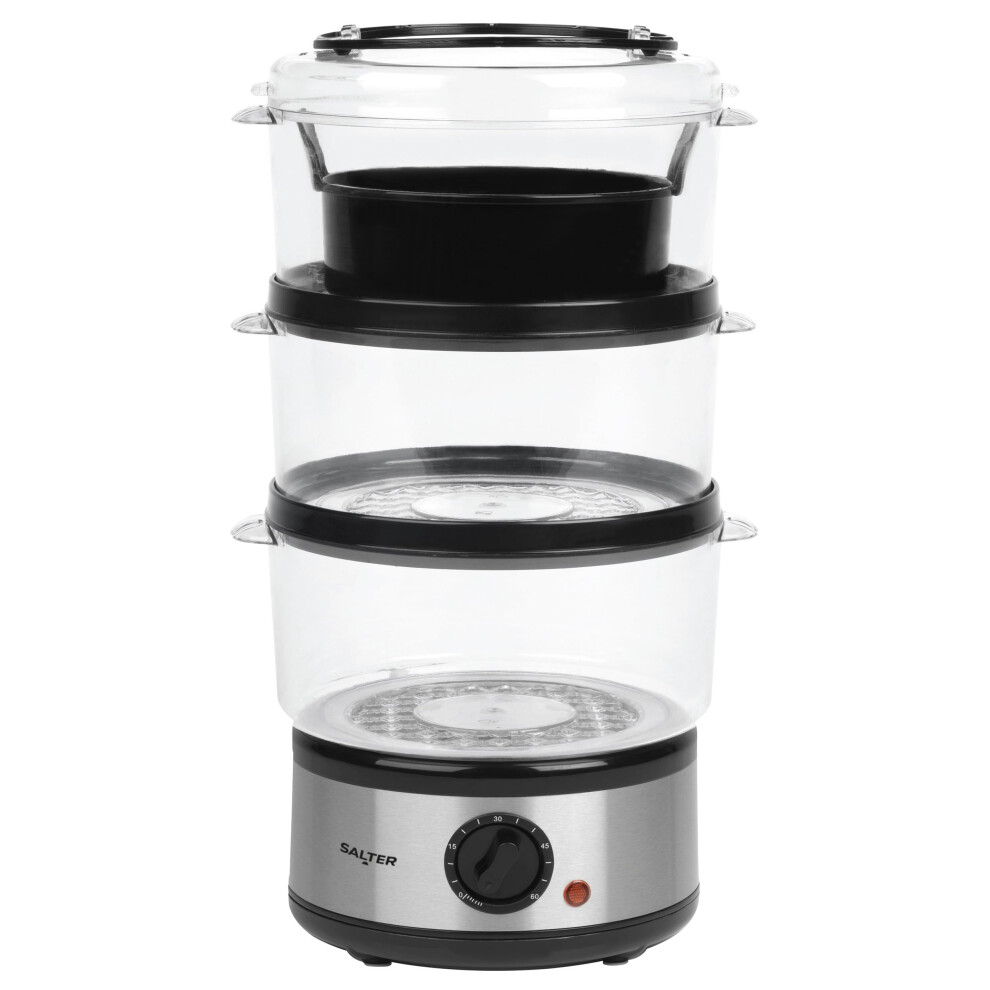Salter 3-Tier Food Steamer - 7.5L Stainless Steel Multi-Cooker, Meat, Dumpling & Vegetable Steamer, Energy Efficient, 60 Minute Timer, 3 Removable