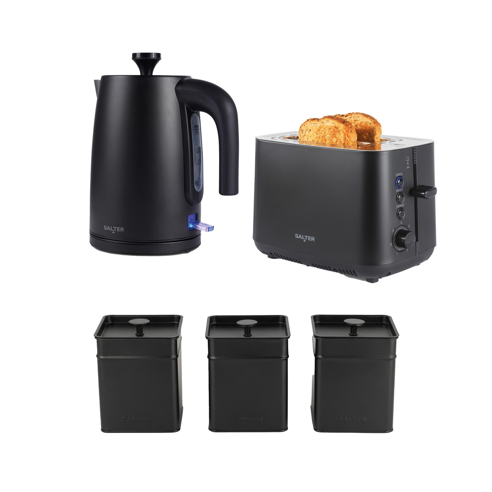 Salter Kuro Kitchen Set 2-Slice Toaster Rapid Boil Kettle Canisters with Lids
