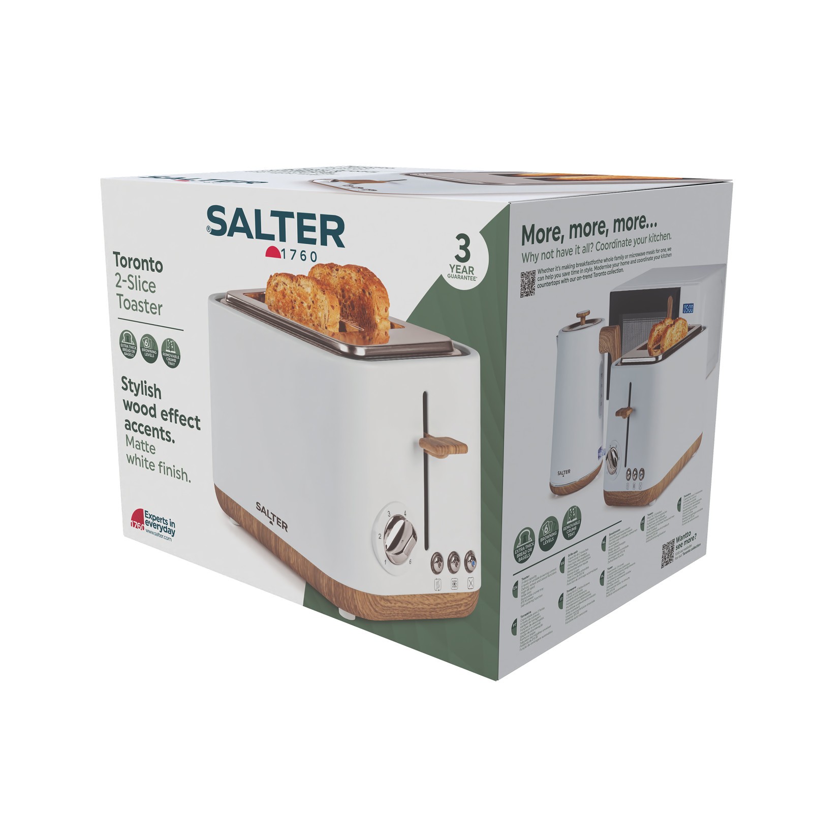 Salter Toronto 3-Pc Kitchen Set–1.7L Kettle, 2-Slice Toaster & Bread Bin, Matte