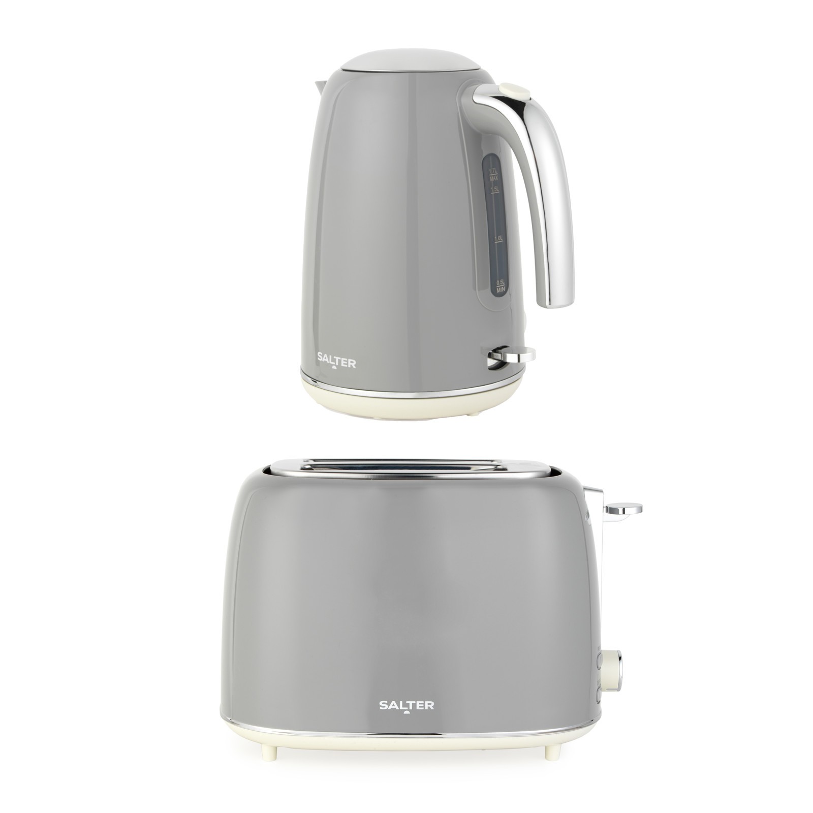 Salter Retro Kettle & Toaster Set – 1.7L, 2-Slice, Wide Slot, Plastic, Grey