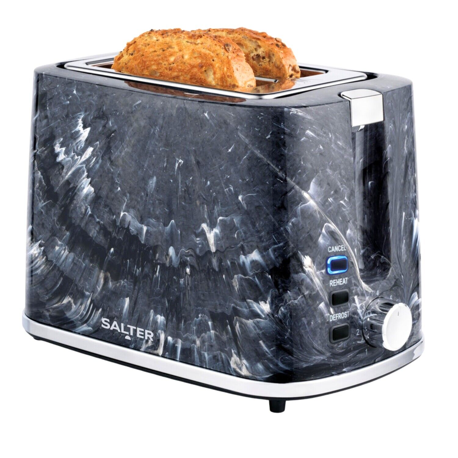 Salter Toaster 2-Slice Marble Black 7 Browning Levels Defrost Reheat Cancel 900W