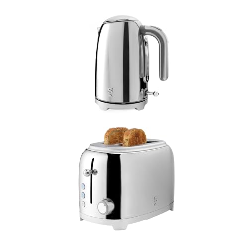 Salter Kettle & Toaster Set – 2-Slice Toaster with 7 Browning Levels, Defrost, Reheat, & Cancel Functions, 1.7 Litre Rapid Boil Kettle with Safety Features, Removable Limescale Filter, Stainless Steel