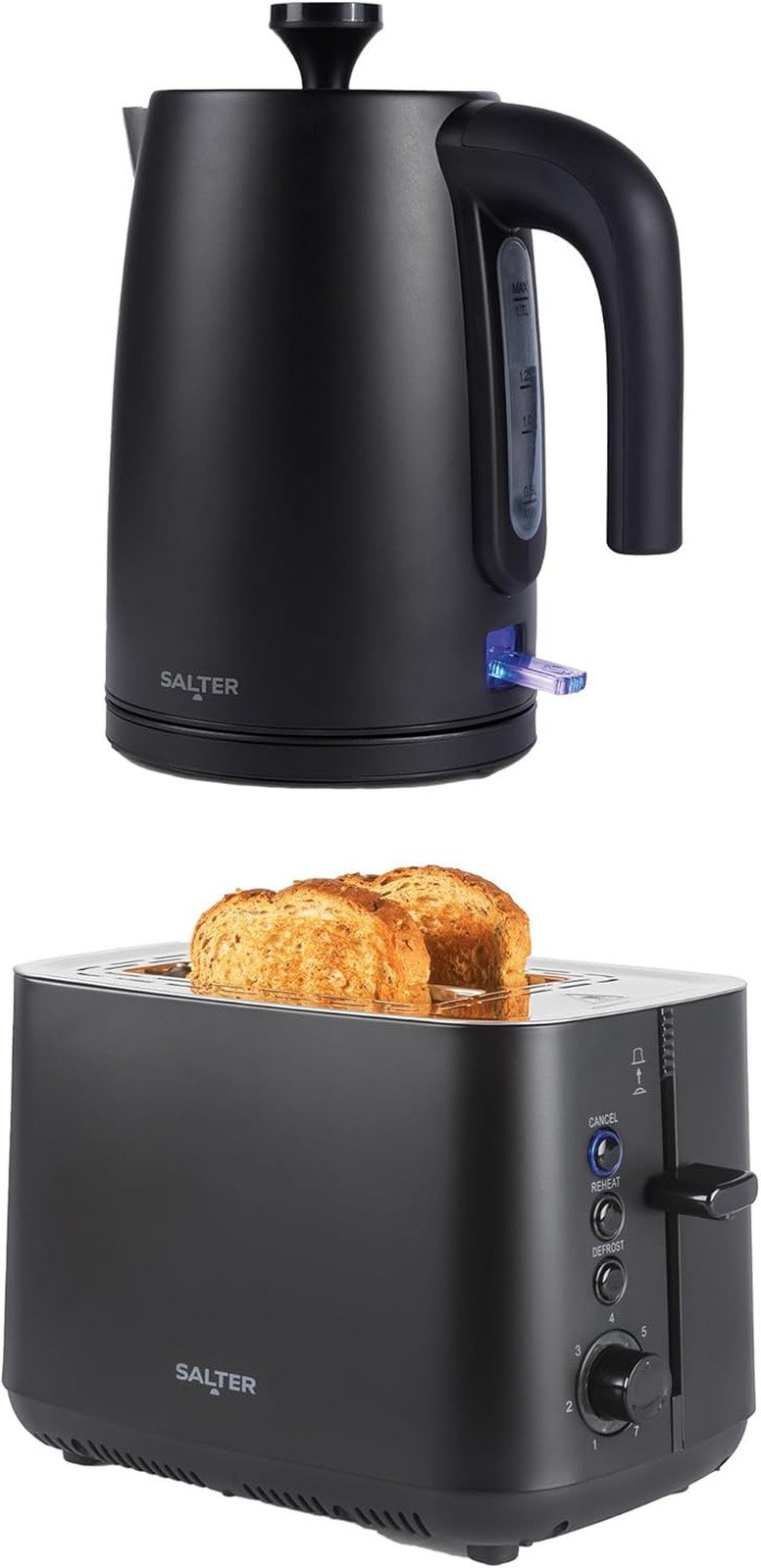 Salter Kettle & Toaster Set ? 2-Slice Toaster with 7 Browning Levels, Defrost, Reheat, & Cancel Functions, 1.7 Litre Rapid Boil Kettle with Safety