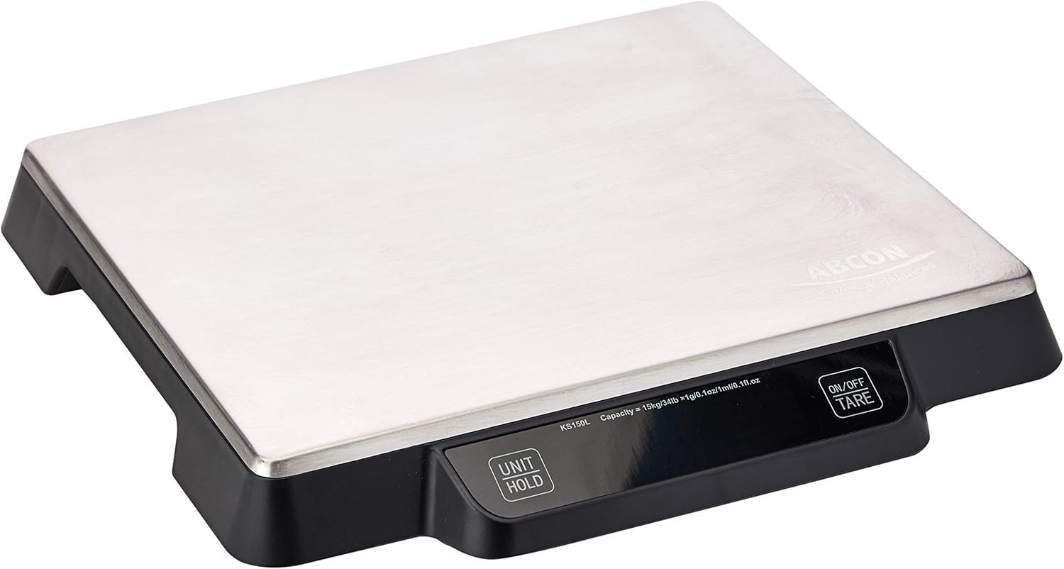 ABCON Multipurpose Digital 15kg 34lb Large Kitchen Postal Weighing Scales Slim Cooking Baking Food Ingredients Liquids Weigh & Add in Same Bowl Shipping Letters Postage Parcel Stainless Steel Platform