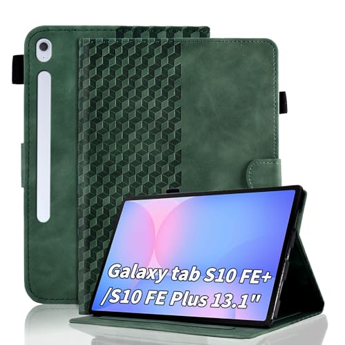 Vkooer Case for Samsung Galaxy Tab S10 FE+/ S10 FE Plus 13.1 Inch Premium PU Leather Folio Cover with Multi Angle Viewing Stand and Card Slots Smart Shell for Galaxy Tab S10 FE+ 2025, Dark green