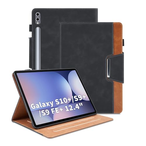 Case for Samsung Galaxy Tab S10 Plus/S9 FE Plus/S9 Plus 12.4 inch PU Leather Smart Cover with Pencil Holder, Auto Wake/Sleep Function Multi-Angle Viewing Stand Business Cover - Black