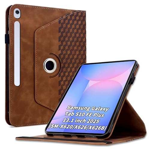 Vkooer Case for Samsung Galaxy Tab S10 FE Plus 13.1 Inch 2025(SM-X620/X626/X626B) 360° Rotating & Hand Strap Book Cover Protective Case with Auto Wake/Sleep for Galaxy Tab S10 FE+ Brown