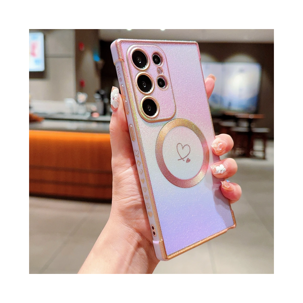 (Pink, For Galaxy S20 FE) Gradient Colorful Love Heart Magnetic Case For Sam