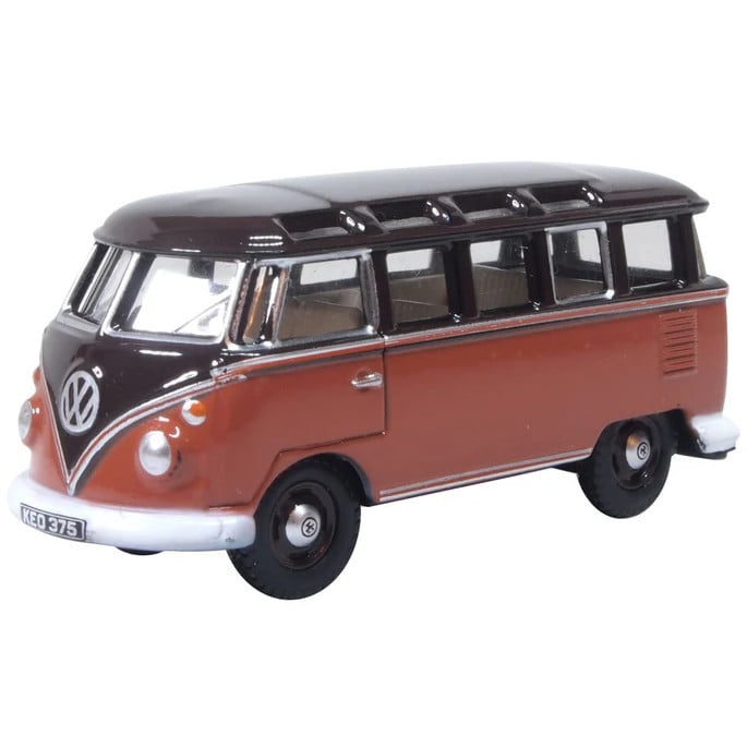 Oxford Diecast 76VWS012 OO Gauge VW T1 Samba Bus Sealing Wax Red/Chestnut Brown
