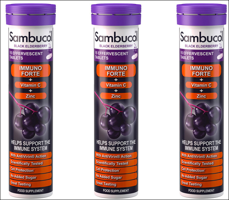 3 x Tubes Sambucol Immuno Forte Effervescent Tablets. 15 Tablets per Tube