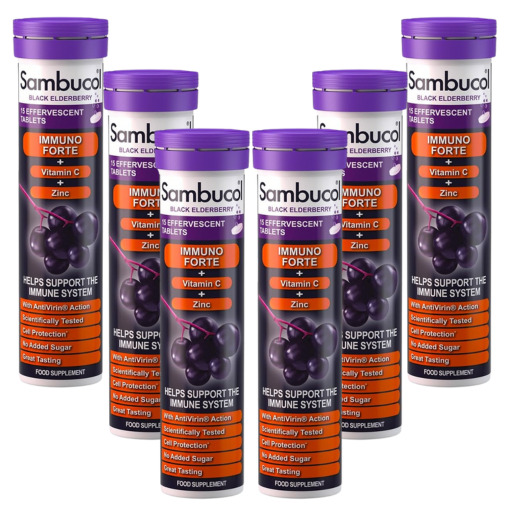 SAMBUCOL Immuno Forte Vitamin C + Zinc Effervescent Tabs 15 (Pack of 6)