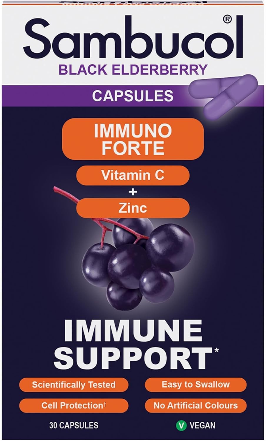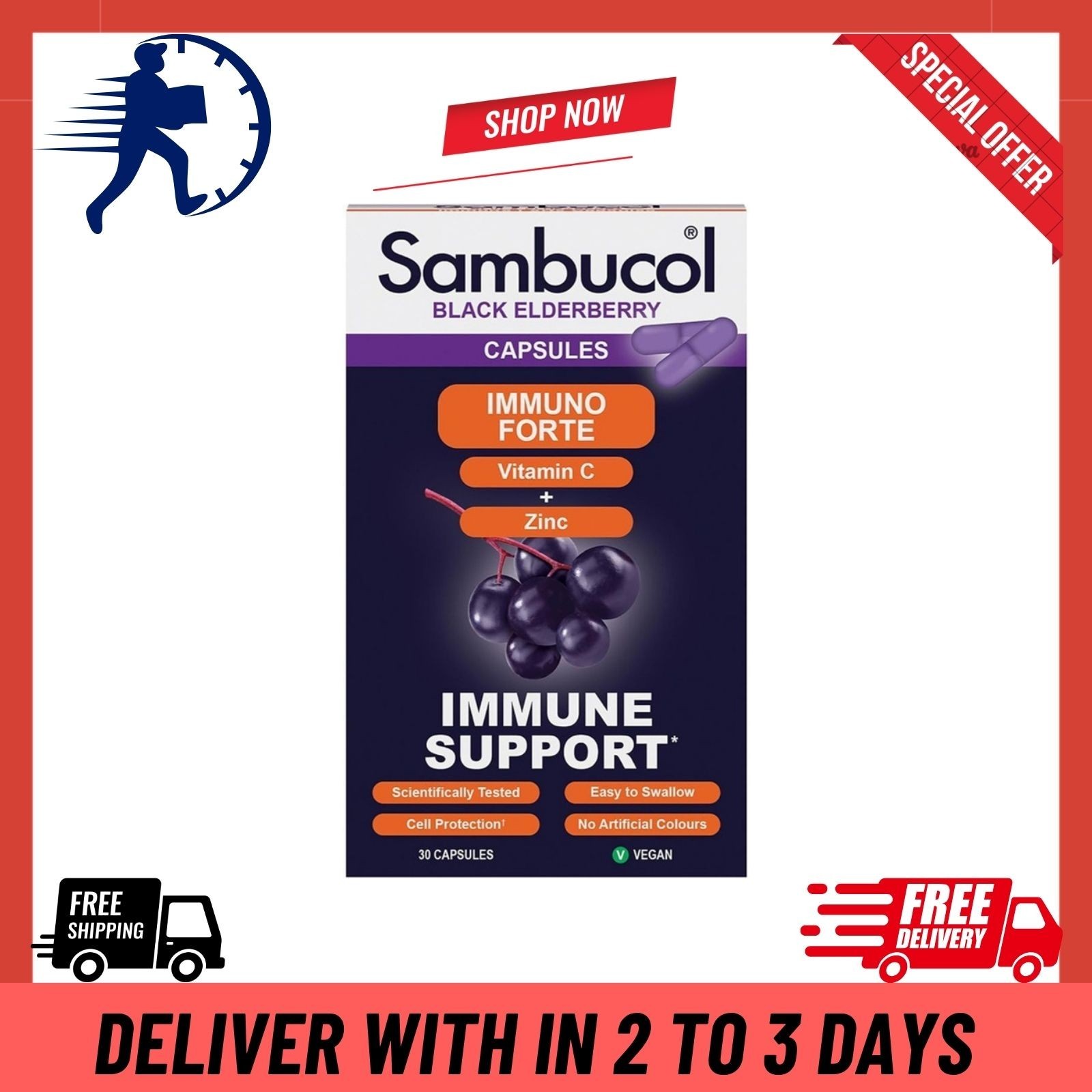Sambucol Natural Black Elderberry Immuno Forte Capsules | Vitamin C | Zinc | Imm