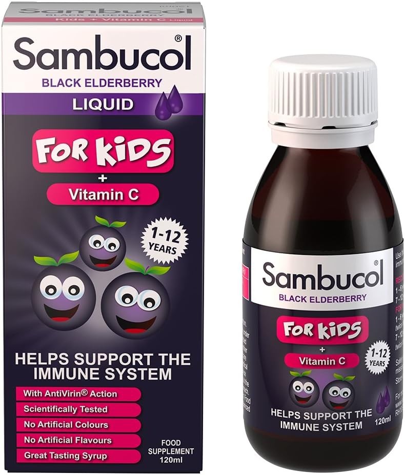 Sambucol Natural Black Elderberry Kids Liquid | Vitamin C | Immune Support Supp