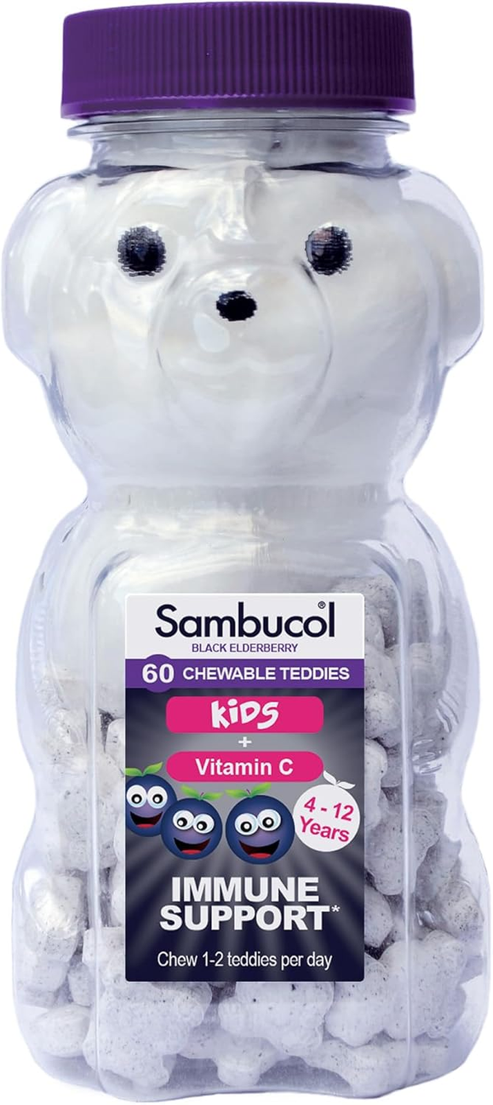 Sambucol Natural Black Elderberry Kids Chewable Teddies| Vitamin C | Immune Supp