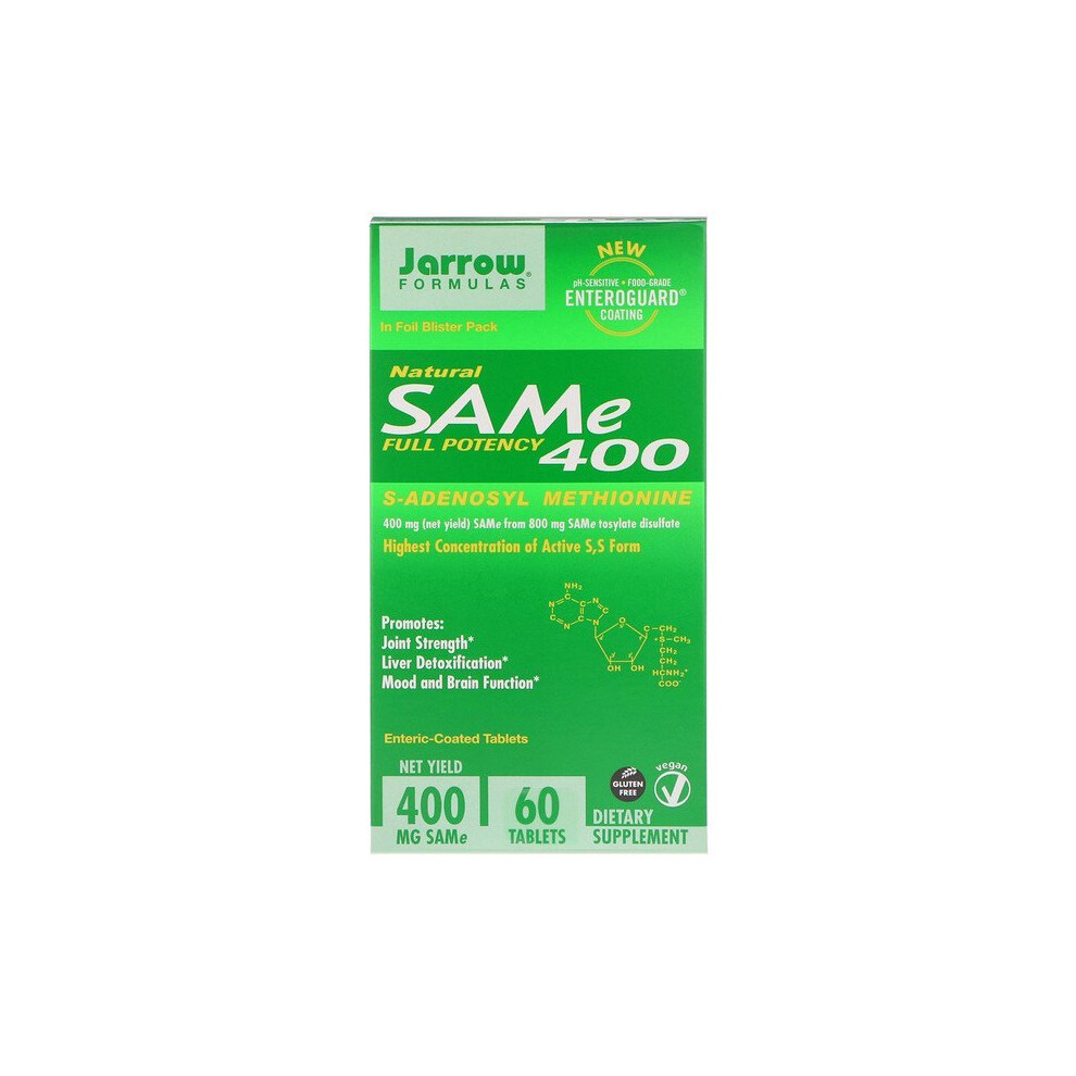 Jarrow Formulas, Natural SAM-e (S-Adenosyl-L-Methionine) 400, 400mg, 60 Enteric-Coated Tablets
