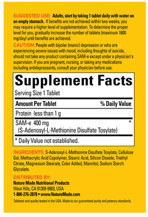 Nature Made SAM-e Complete 400 mg, Complete, Dietary Supplement for Mood Support
