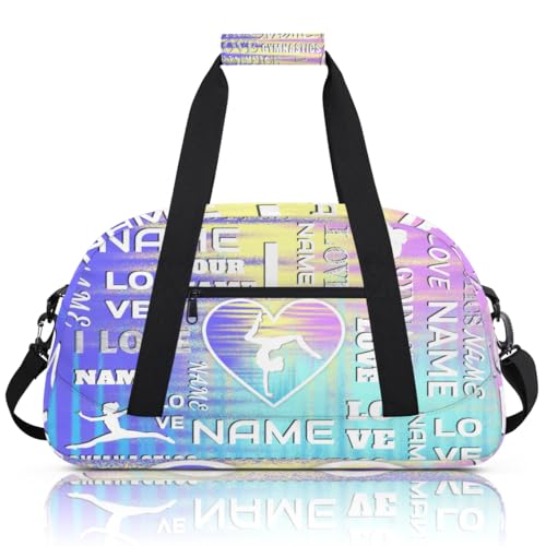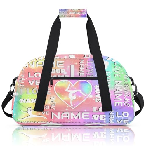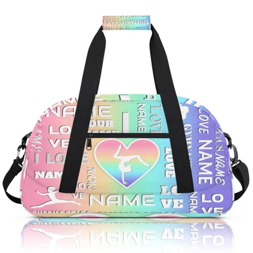 BAGHONEY Personalised Gymnastics Bag Gym Bag Dance Accessories Custom Name Weekender Travel Duffle Bag Carry on Training Tote Rainbow