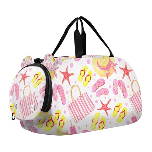 Lyeorm Summer Beach Accessories Kids Duffle Bag, Overnight Travel Sport Gym Bags with Shoe Compartment for Boys & Girls