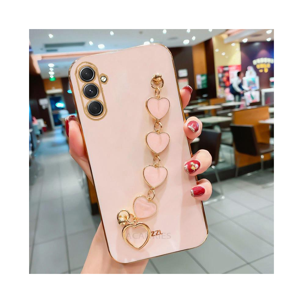 (zb sl pink, A12(4G 5G)) Luxury Plating Love Heart Bracelet Case For Samsun