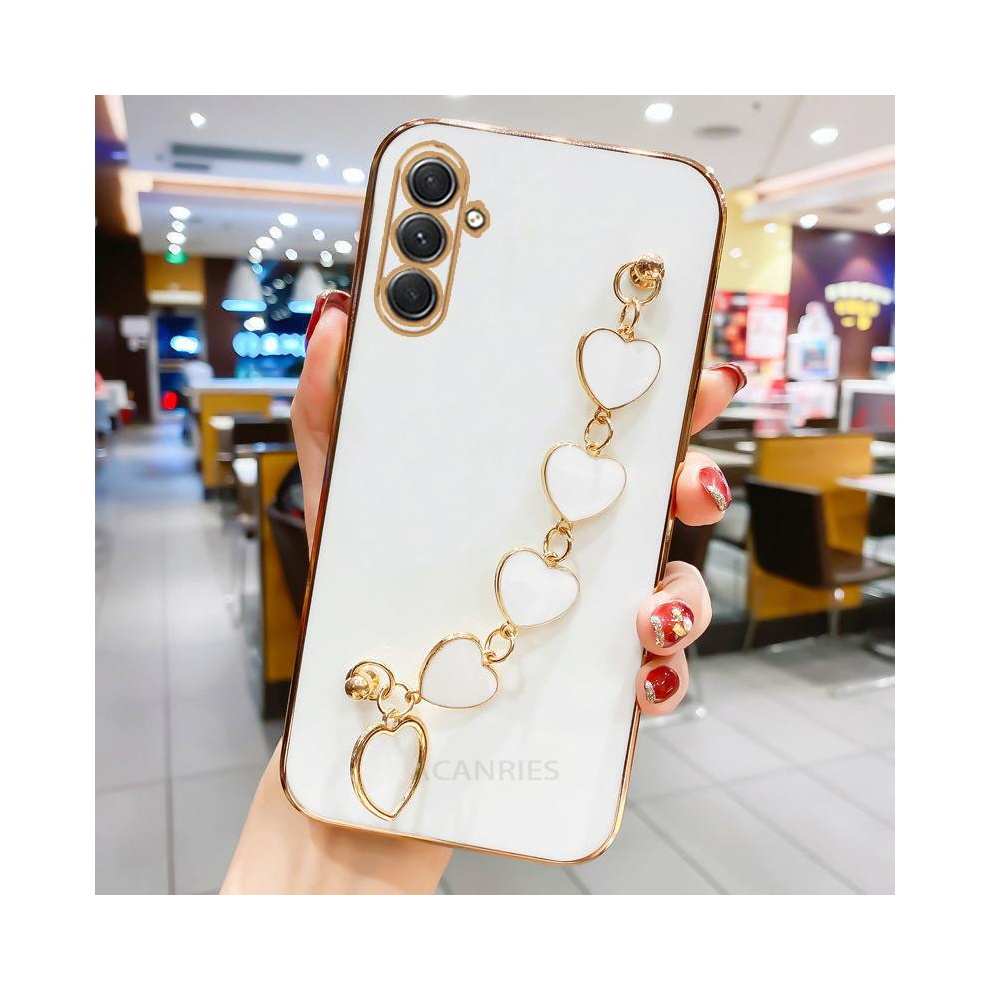 (zb sl white, A12(4G 5G)) Luxury Plating Love Heart Bracelet Case For Samsun