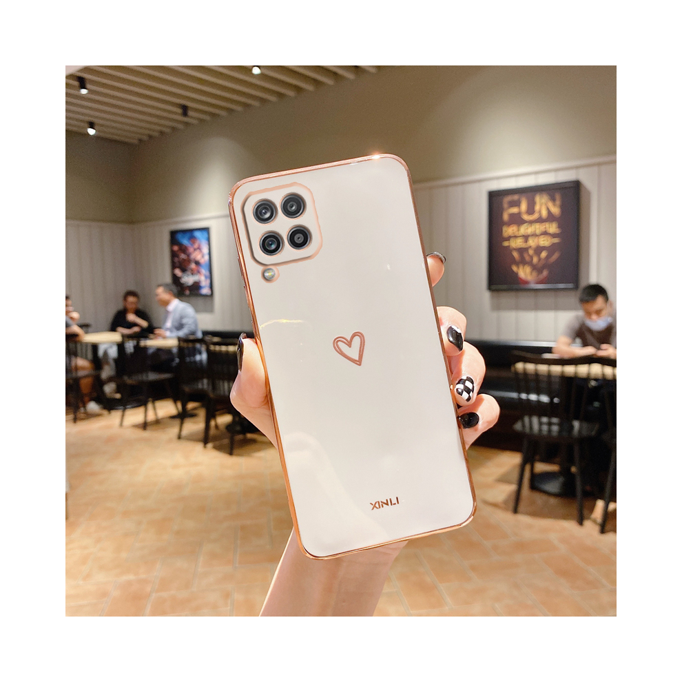 (AX White, A12 4G 5G) Luxury Plating Love Heart Phone Case On For Samsun