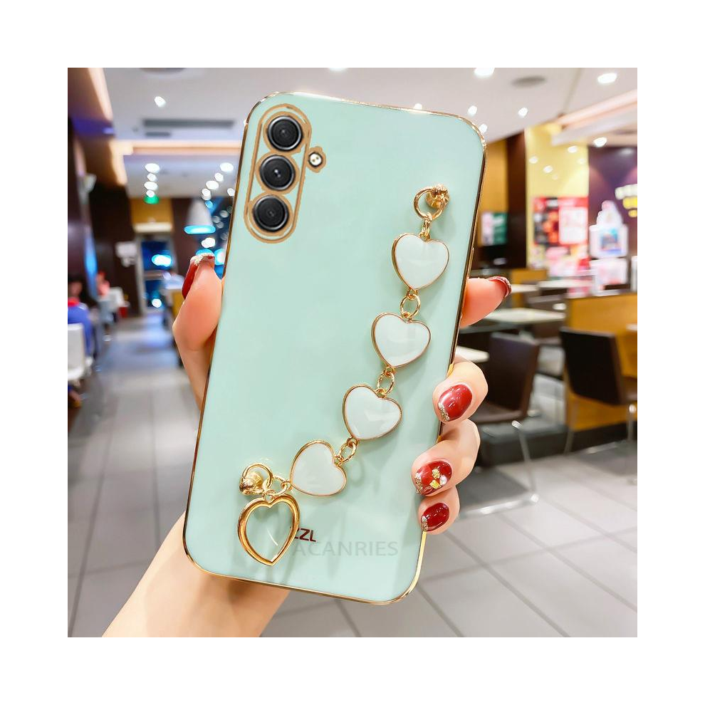 (zb sl green, A12(4G 5G)) Luxury Plating Love Heart Bracelet Case For Samsun