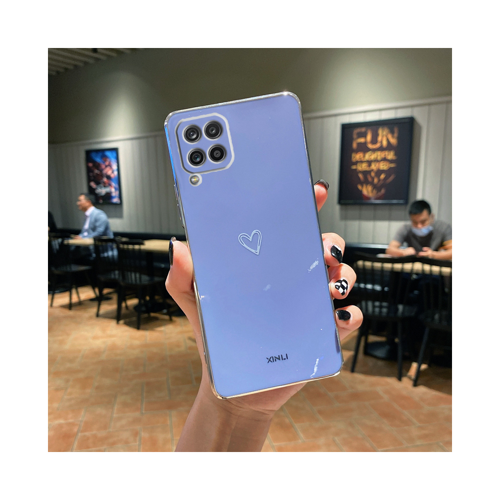 (AX Purple, A12 4G 5G) Luxury Plating Love Heart Phone Case On For Samsun
