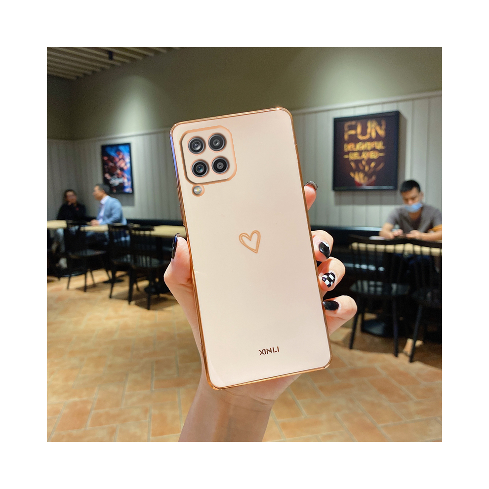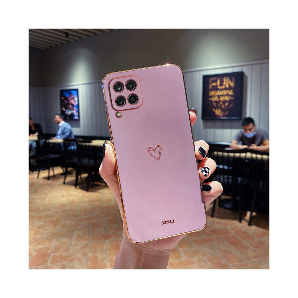 (AX Pink, A12 4G 5G) Luxury Plating Love Heart Phone Case On For Samsun