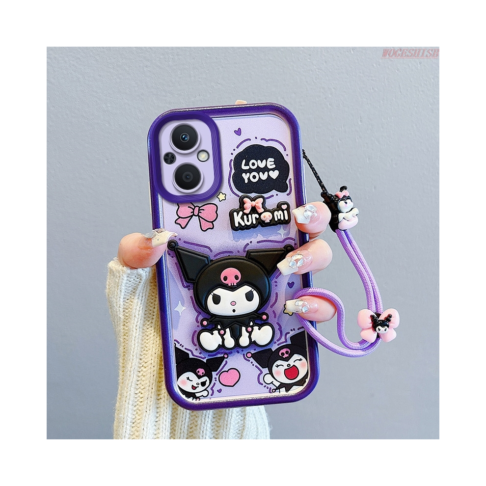 (M Dog, Galaxy A12 Nacho) Kuromi 3D Cartoon Hand Strap Phone Case For Samsun