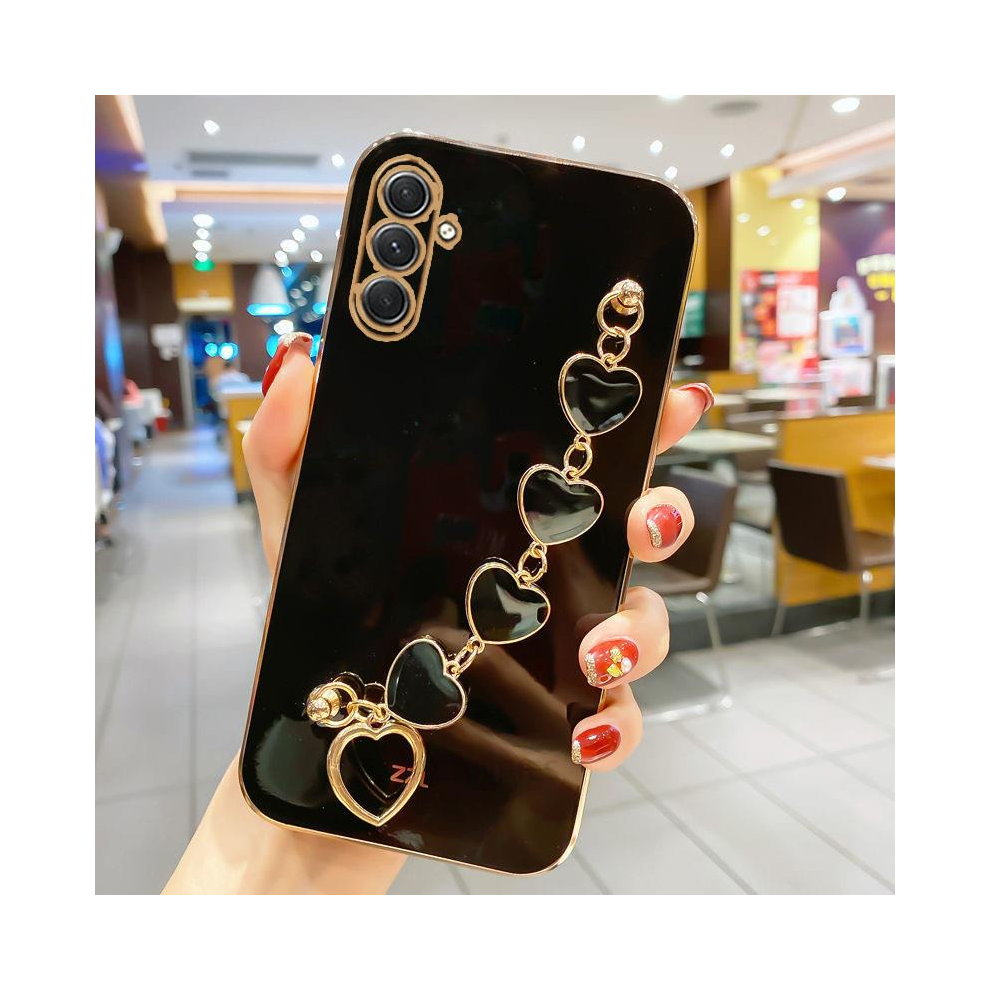 (zb sl black, A12(4G 5G)) Luxury Plating Love Heart Bracelet Case For Samsun