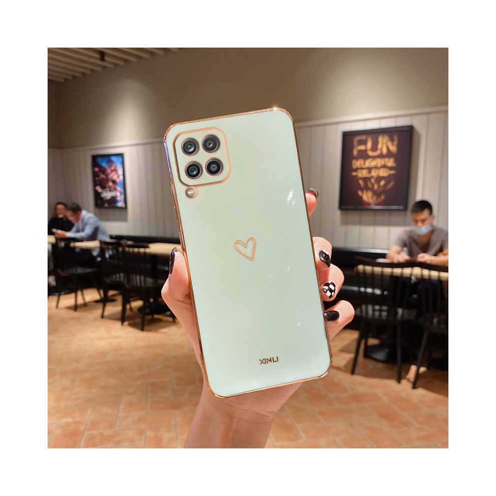(AX Avocado Green, A12 4G 5G) Luxury Plating Love Heart Phone Case On For Samsun
