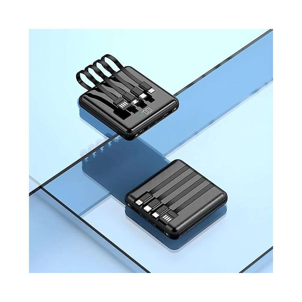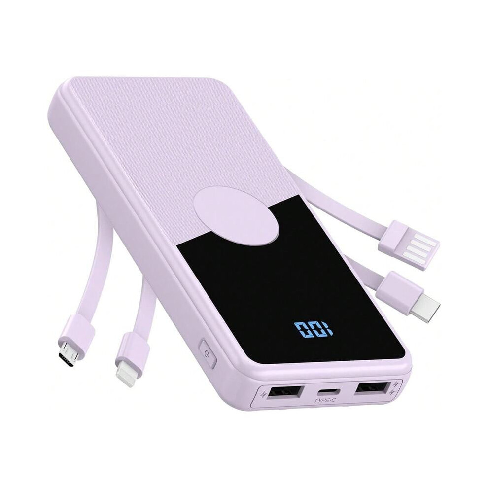 Portable 10000mAh Power Bank with Built-in Cables, LED Display, Compatible with iPhone, Samsung, iPad & Tablets