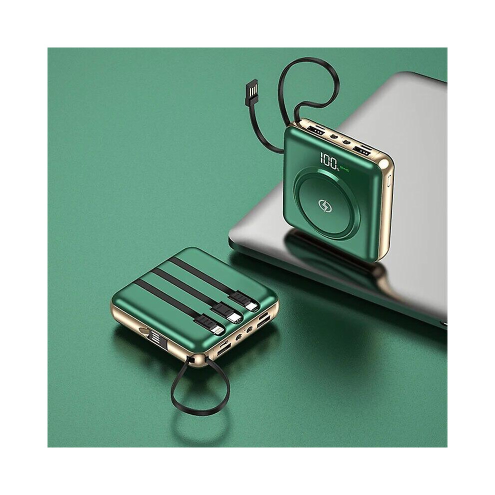 (Green Option 4, 10000mAh) 20000mah Qi Wireless Charger Power Bank Built In Cable Portable Charger For Iphone 14 13 12 Samsung Huawei Xiaomi Mini Powe