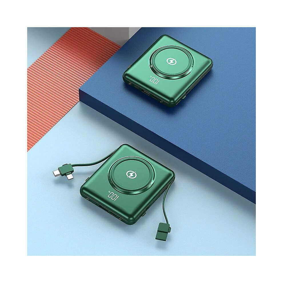 (Green) Power Bank 10000mah Magnetic Wireless Charger Powerbank For Iphone 12 13 14 Huawei Samsung Xiaomi Mini Portable External Battery