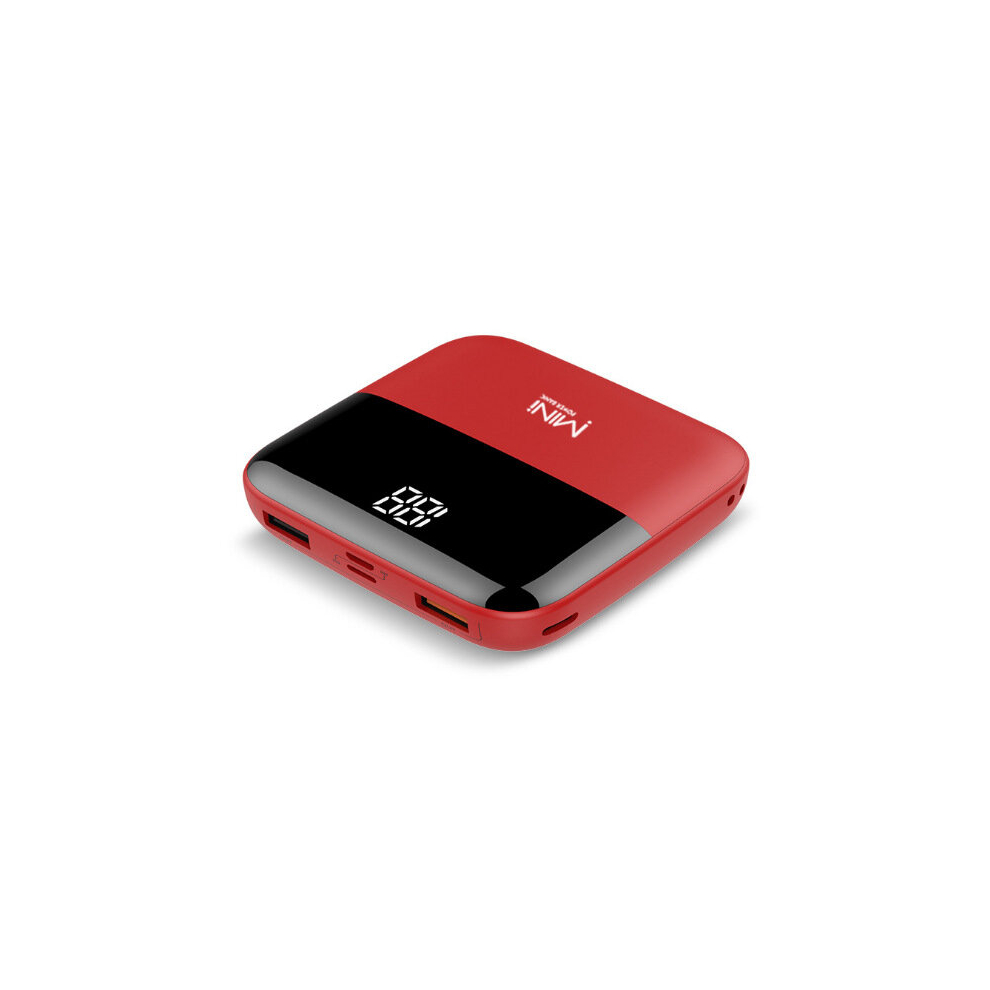 Mini Power Bank 10000mAh LED Display External Portable Type C Charger PoverBank Double USB for iPhone Huawei Samsung - Red