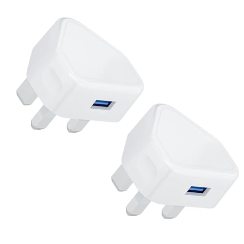 Rekavin Usb Plug UK 3 Pin Mains Charger,2 Pack Usb Wall Charger Plug Adaptor UK Compact Phone Charge Head Old 5V/1AMP/5W Charging for iPhone 11/11 Pro/10/Xs/XS Max/XR/X/8/7/6 Plus/5/5S/iPad,Samsung
