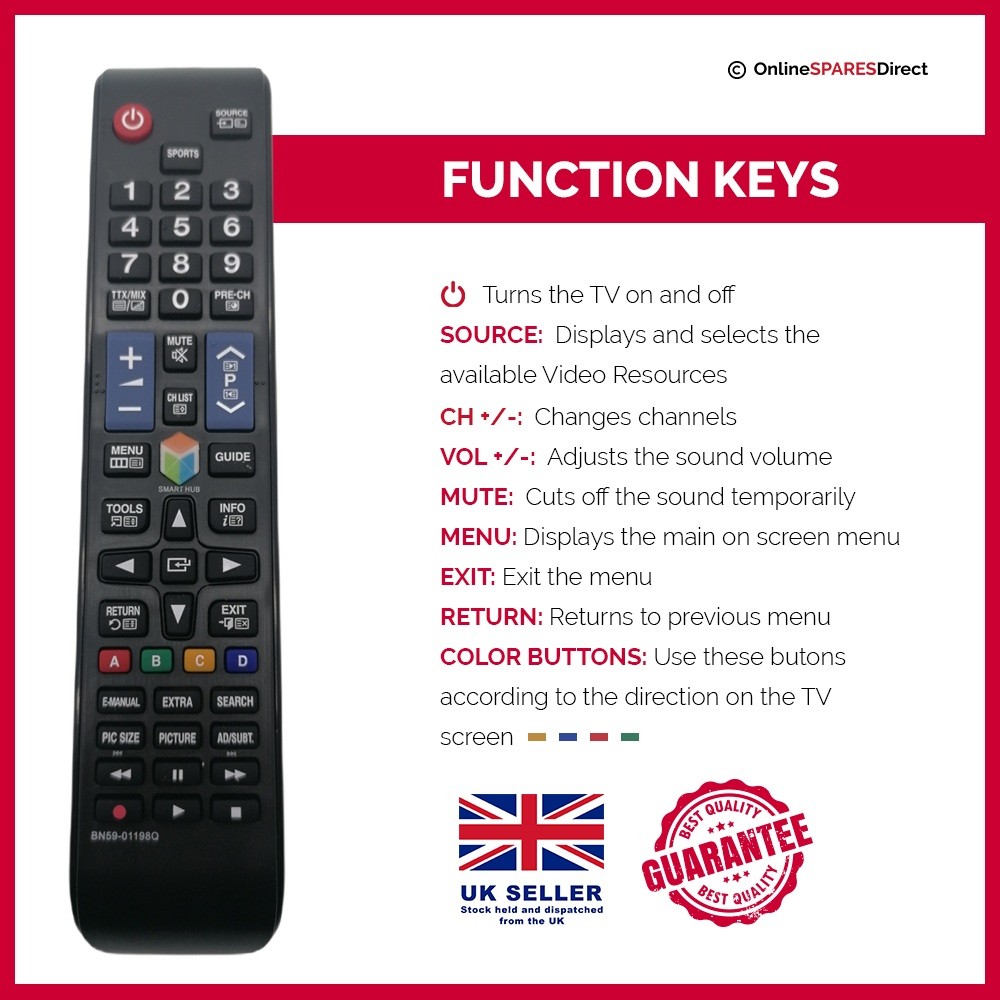 Replacement Remote Control For Samsung UE40JU6400K 40 JU6400 6 Series UHD 4KLED