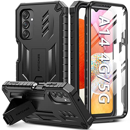 FNTCASE for Samsung A14 Phone Case: 360 Shockproof Protective Phone Cover Full Body Hard Military Hybrid Galaxy A14 4/5G Case Dual Heavy Duty Drop Protection Mobile Case With Kickstand Black