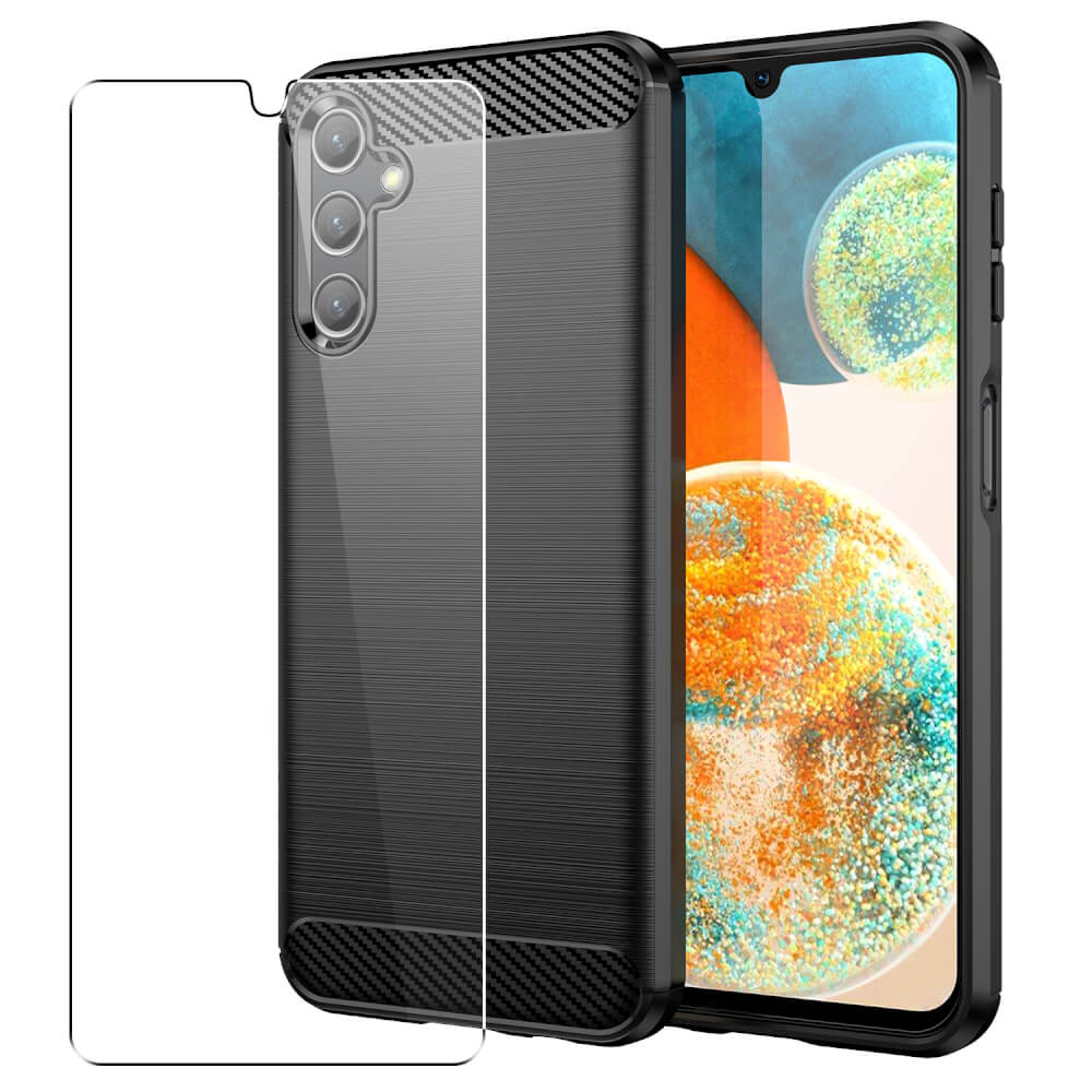 SDTEK Carbon Case for Samsung Galaxy A14 Phone Cover and Glass Screen Protector