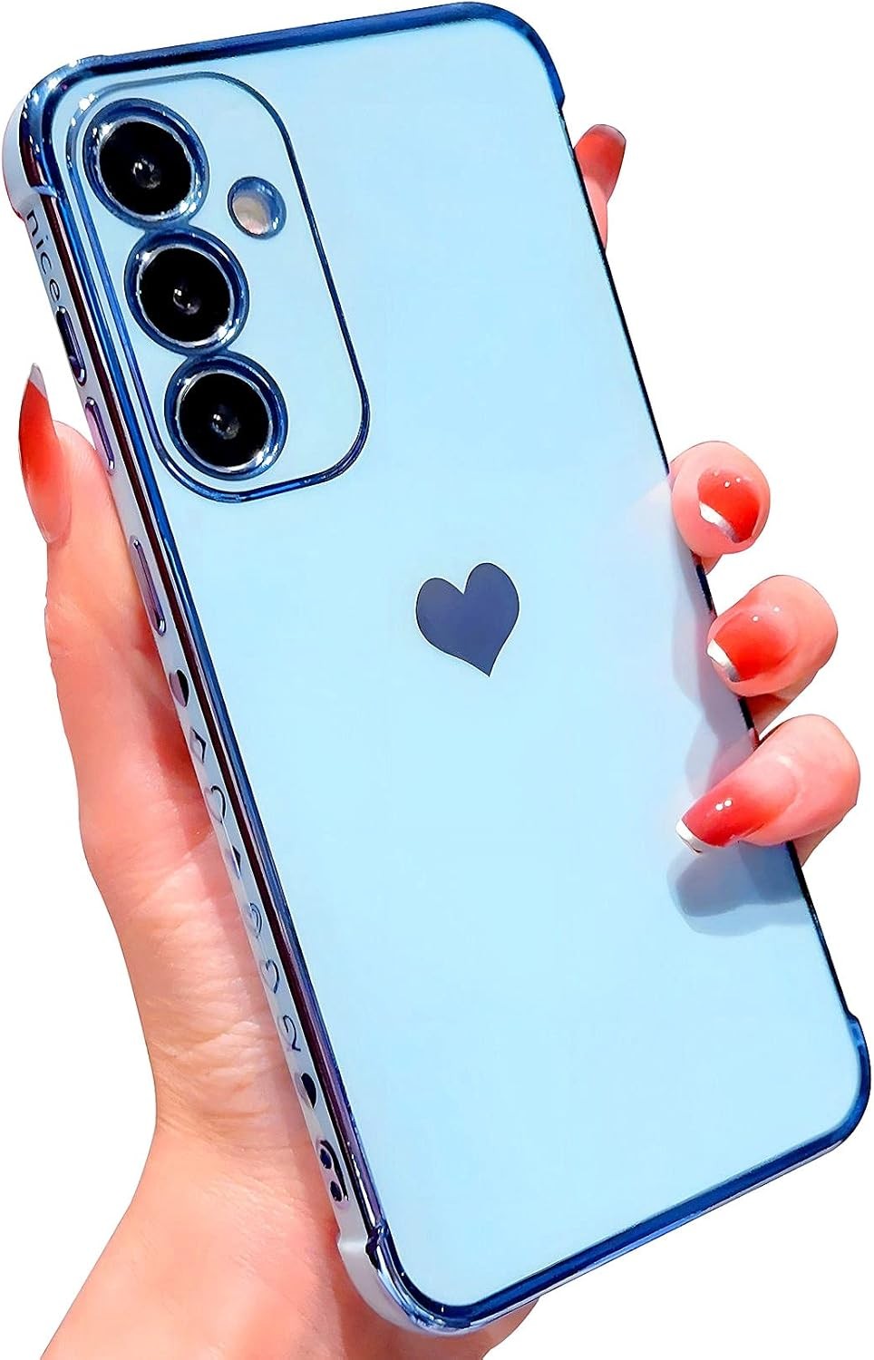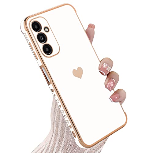 KANGHAR Compatible with Samsung A14 5G Case for Women Girl, Plating Edge Cute Love Heart Soft TPU Bumper with 4 Corners Shockproof Protection Phone Case Cover for Galaxy A14 5G(White)