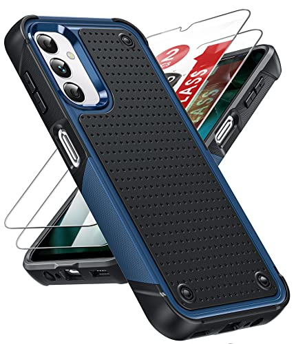 LeYi Armour Case Compatible with Samsung Galaxy A14 5G, Galaxy A14 Phone Cover with 2 Pack Tempered Glass Screen Protectors, Heavy Duty Hard PC Textured Shockproof Back Case Blue