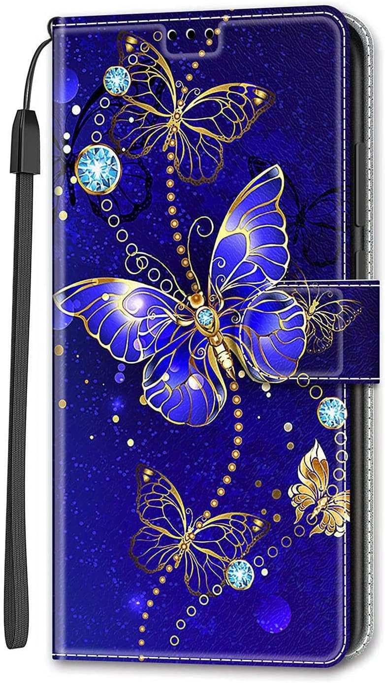 Jeffene for Samsung Galaxy A14 4G/5G (6.6 inch) Case,PU Leather Flip Wallet Cover with [Kickstand][TPU Inner Shell][Card Holder],Blue&Cat