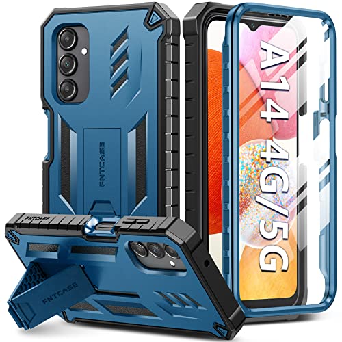 FNTCASE for Samsung Galaxy A14: 360° Shockproof Protective Cover - Full Body Hard Military Hybrid Case - Dual Heavy Duty Drop Protection - Kickstand - Blue