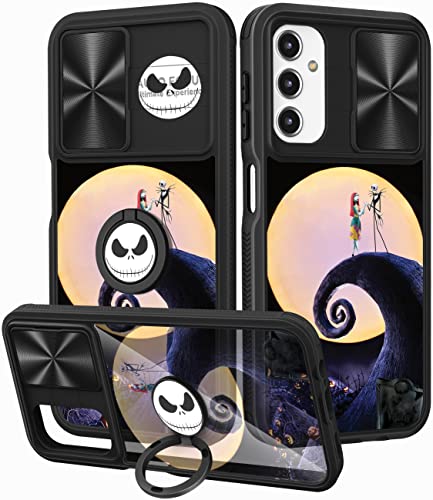 Joyleop (2in1 for Galaxy A14 5G Phone Case Cartoon Cute for Girls Pretty Women Teen Kids Girly Covers Black Pattern Design with Slide Camera Cover+Ring Holder for Samsung Galaxy A14 5G 6.6” Skull